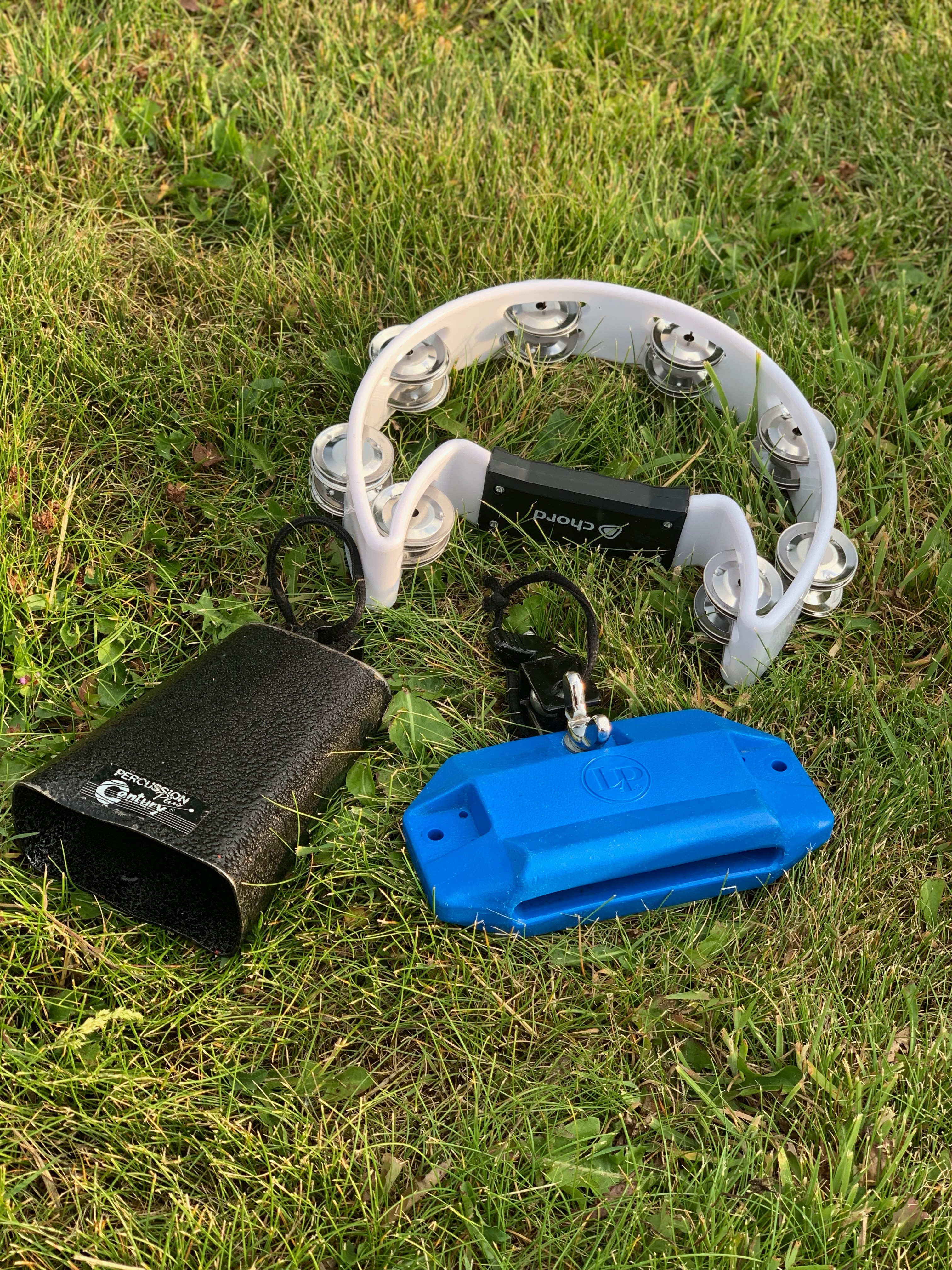 The ’Toys’ are a Woodblock, Cowbell, Tambourine and Brazilian Whistle.